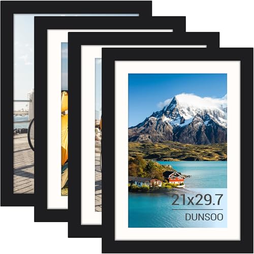 EGOFINE A4 Frames Black Set of 4 - Wooden A4 Picture Frames, A4 Photo Frames with A5 Mat, A4 Poster Frame with Plexiglass for Table Top and Wall Mounting