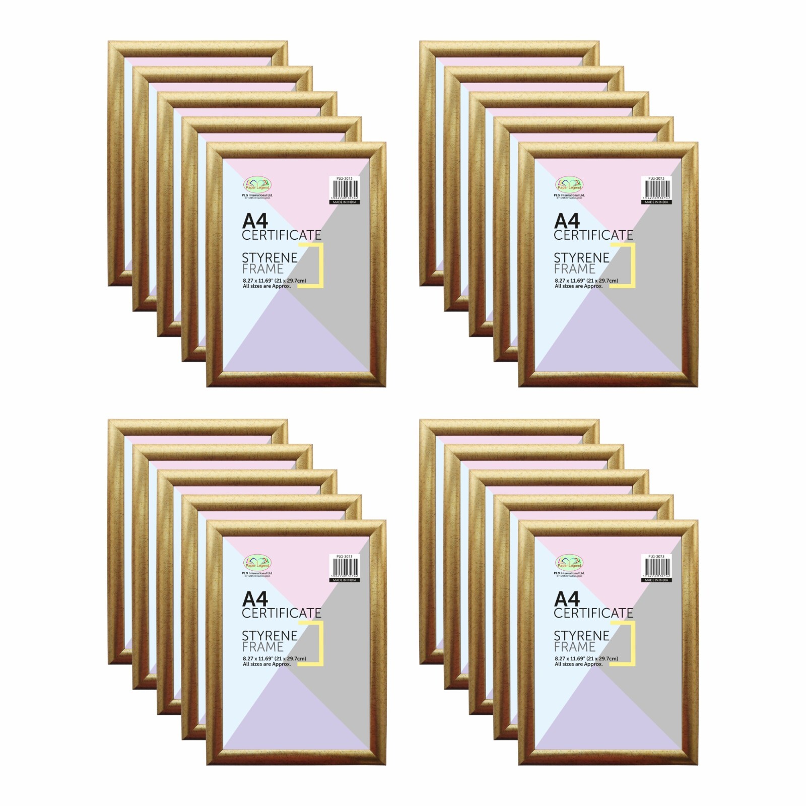 (Pack of 20) Plastic A4 Size Photo Frames With Stand Gold Border Wholesale Bulk