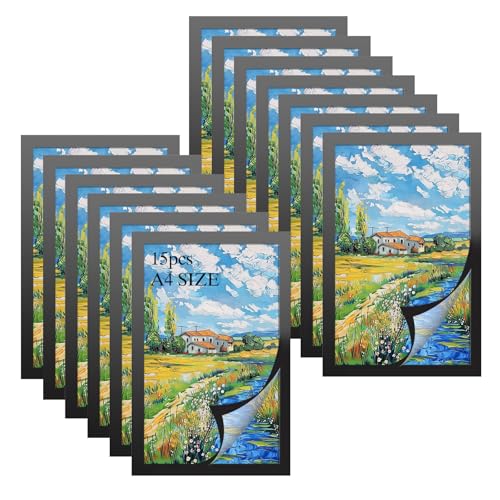 Woobroo A4 Magnetic Photo Frames Set of15 PVC Certificate Frames for Displaying Documents Posters Prints and Pictures on Wall or Tabletop