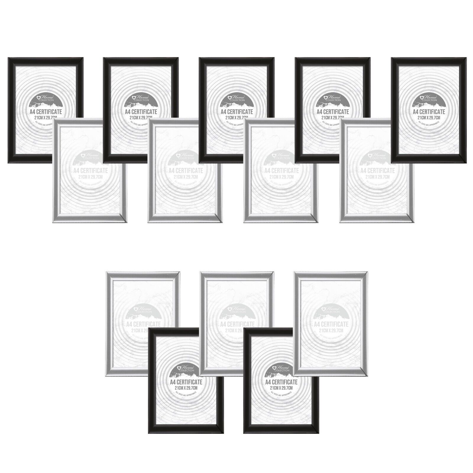 (Set of 14) A4 Certificate Photo Frames Wall Mountable Home Decor Black & Silver
