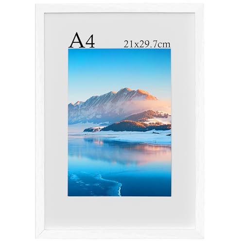 A4 White Frame, 21x30 cm Wooden A4 Photo Frames, Picture Frames with Mount, White Picture Frames for a4 Print, Certificate Frame for Wall Mount, For Table Decoration