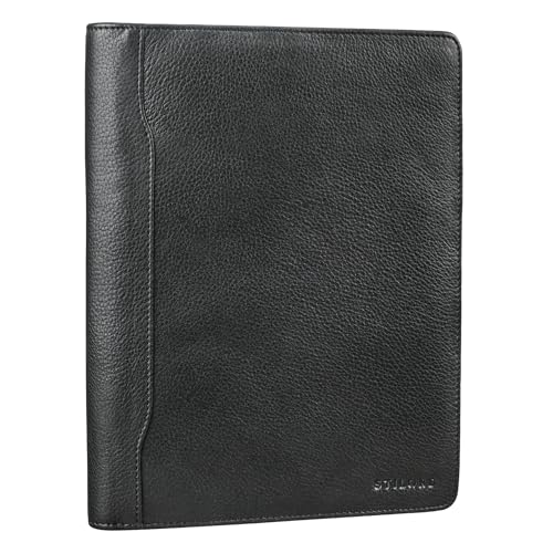 STILORD 'Roland' Leather Conference Folder A5 | Organized Elegance for Business Professionals | Document Organiser Portfolio Folder A5 Leather Document Bag, Colour:Obsidian Black
