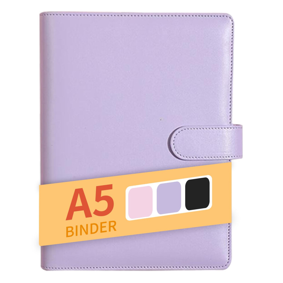 A5 Binder, PU Leather Refillable Ring Binder Planner, Budget Organiser Notebook for Work and Travel in Purple
