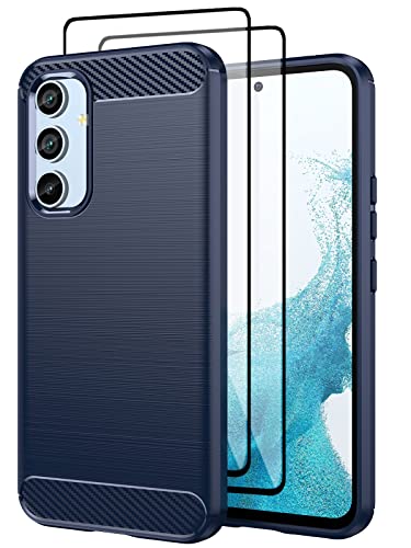 Teayoha Case for Samsung A54 5G Case,with Tempered Glass Screen Protector [2 Pack], Carbon Fiber Scratch Resistant, Shock Absorption Soft TPU Drawing Protective Cases Phone Cover - Deep Blue