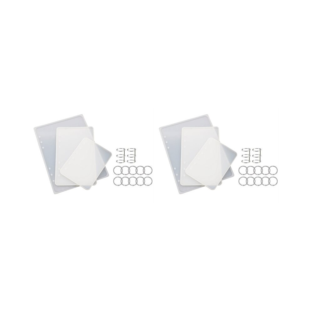 Tomorotec 2 Sets of Note Book Cover Resin Mold Clear Casting Epoxy Resin Molds Book Cover A6 A5 A7 with 40 PCS Book Rings and
