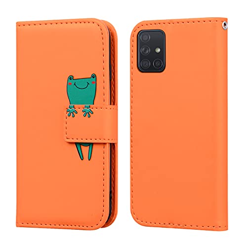 LUKASI for Samsung Galaxy Phone A71 Case, Cartoon Pattern Folding Stand PU Leather Wallet Flip Cover with TPU Inner Shell, Card Slots, Magnetic Closure (Samsung Galaxy A71-Orange)