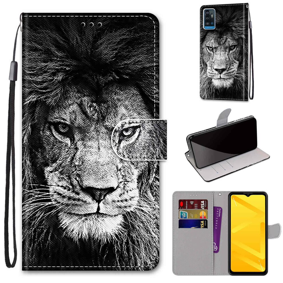 Compatible with ZTE Blade A71 Mobile Phone Case, Flip Cover Protective Case (AntiDrop) Card Slot Wallet Style NonSlip Case Black Lion