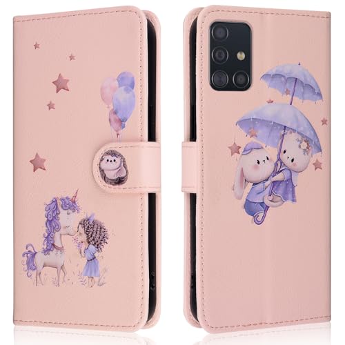 Tiyoo Flip Phone Case for Samsung Galaxy A71, Premium Magnetic Wallet Case for Phone Protection,Cute Cartoon Pattern PU Leather with Card Slots&Wrist Strap,Shockproof Phone Cover for Women/Girl, Pink