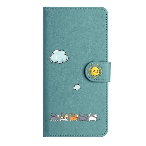 Nbziyoo Lovely Cats Phone Case for Samsung Galaxy A71 4G,Cute Cats/Sun Flip Wallet Case with Card Slots, Premium Magnetic PU Leather Cover for Samsung Galaxy A71 4G,Green