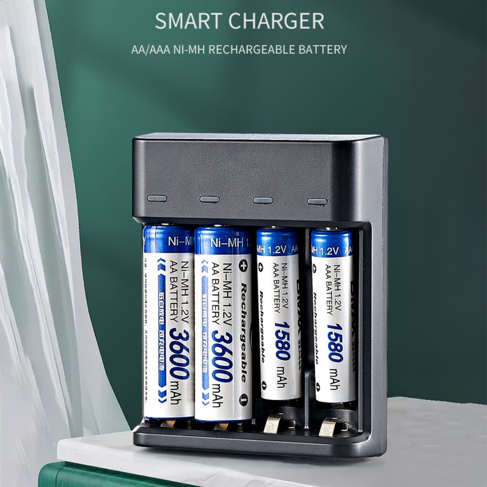 ¦Smart 4-Slot Battery Charger For AA/AAA Ni-MH Batteries Fast Charging USB Plug