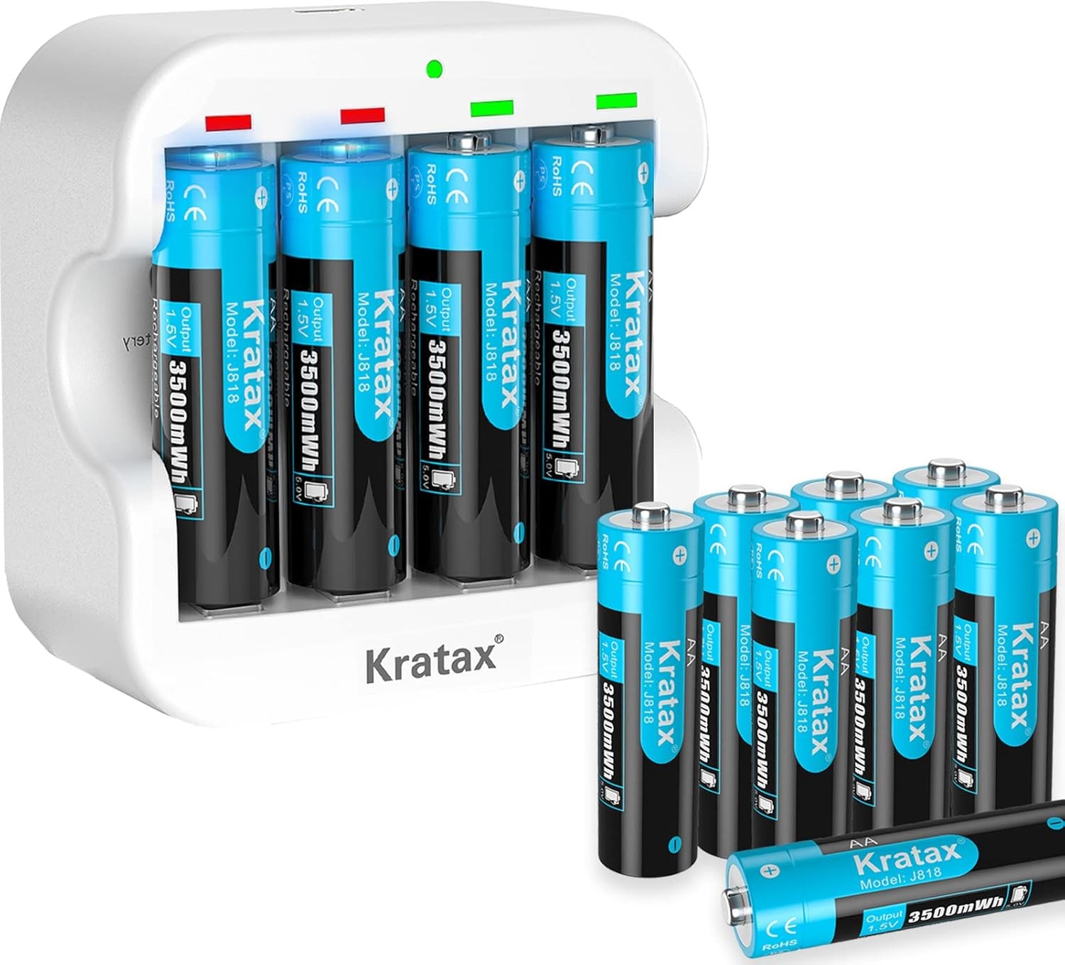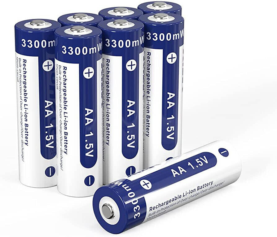 Rechargeable Battery AA with Charger,3000mWh Lithium Aa Batteries 8 Count 1.5V,