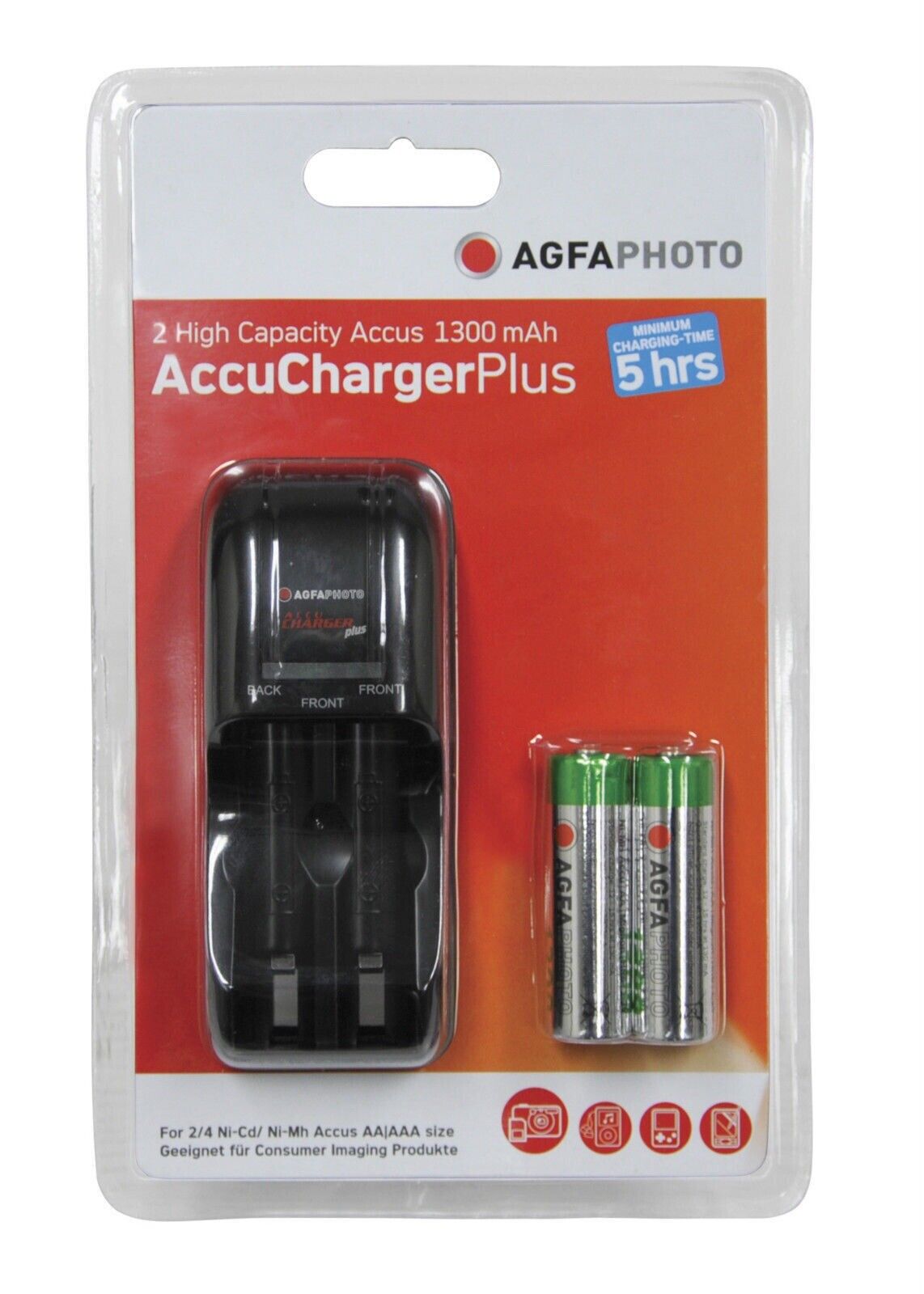 AGFA PHOTO AA/AAA Overnight Charger with 2 1300mAh AA NiMH Batteries Rechargable