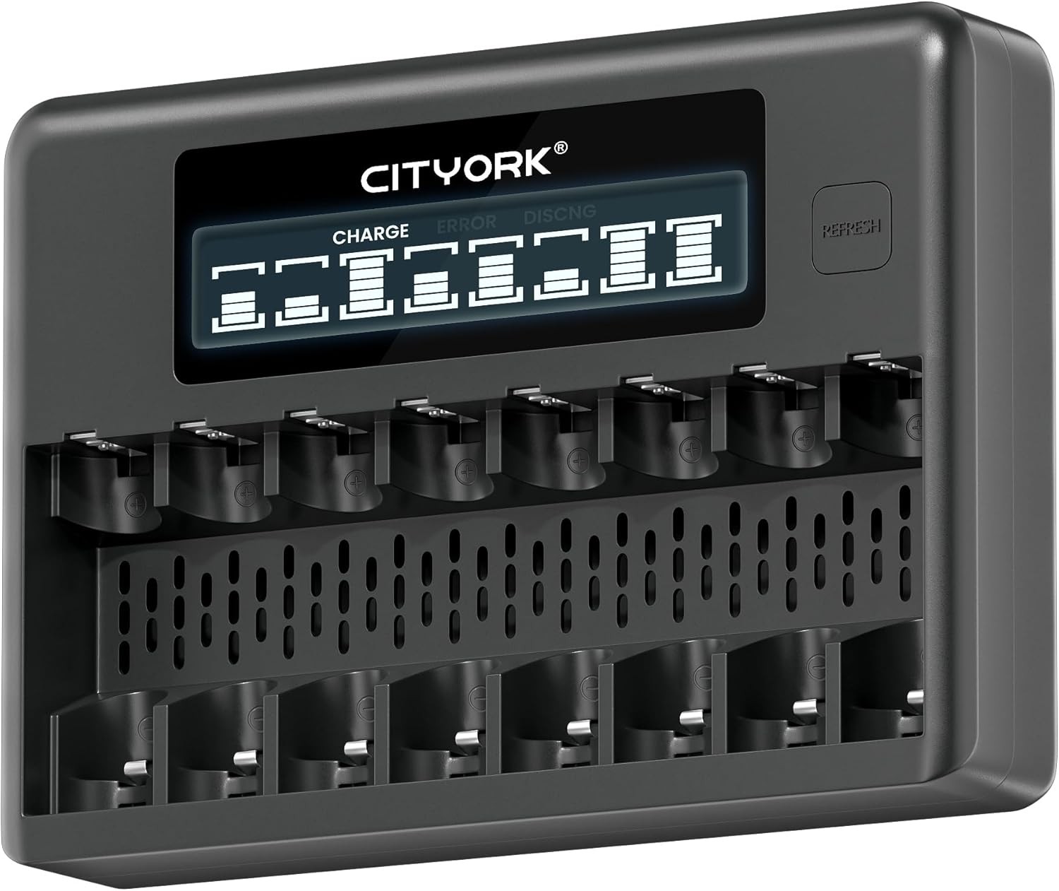 CITYORK 8-bay AA AAA battery charger with LCD display, USB fast charge and inde