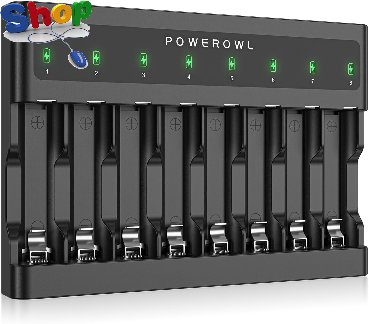 POWEROWL 8 Bay AA AAA Battery Charger (USB High-Speed Charging, Independent Slot