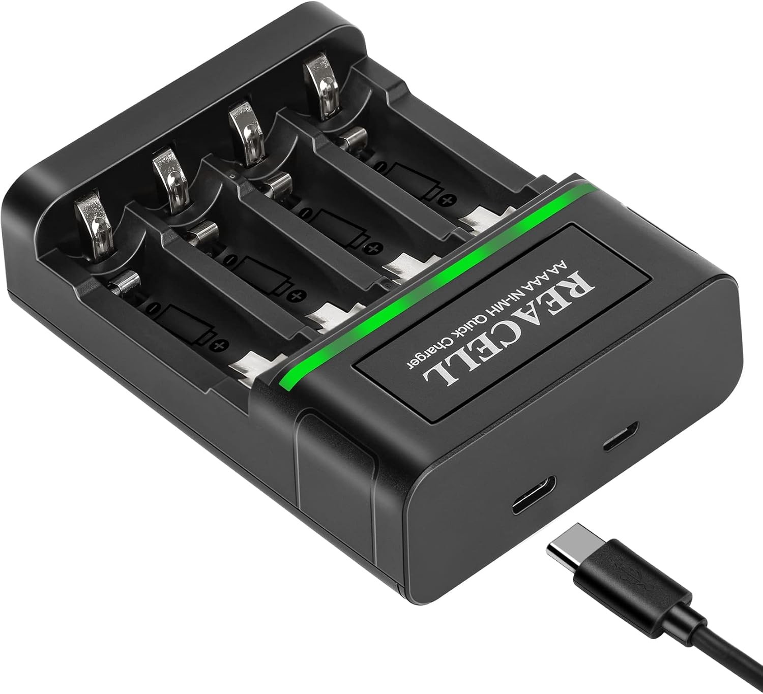 REACELL 4 Slot AA AAA Battery Charger, Battery Charger for Rechargeable Batteri