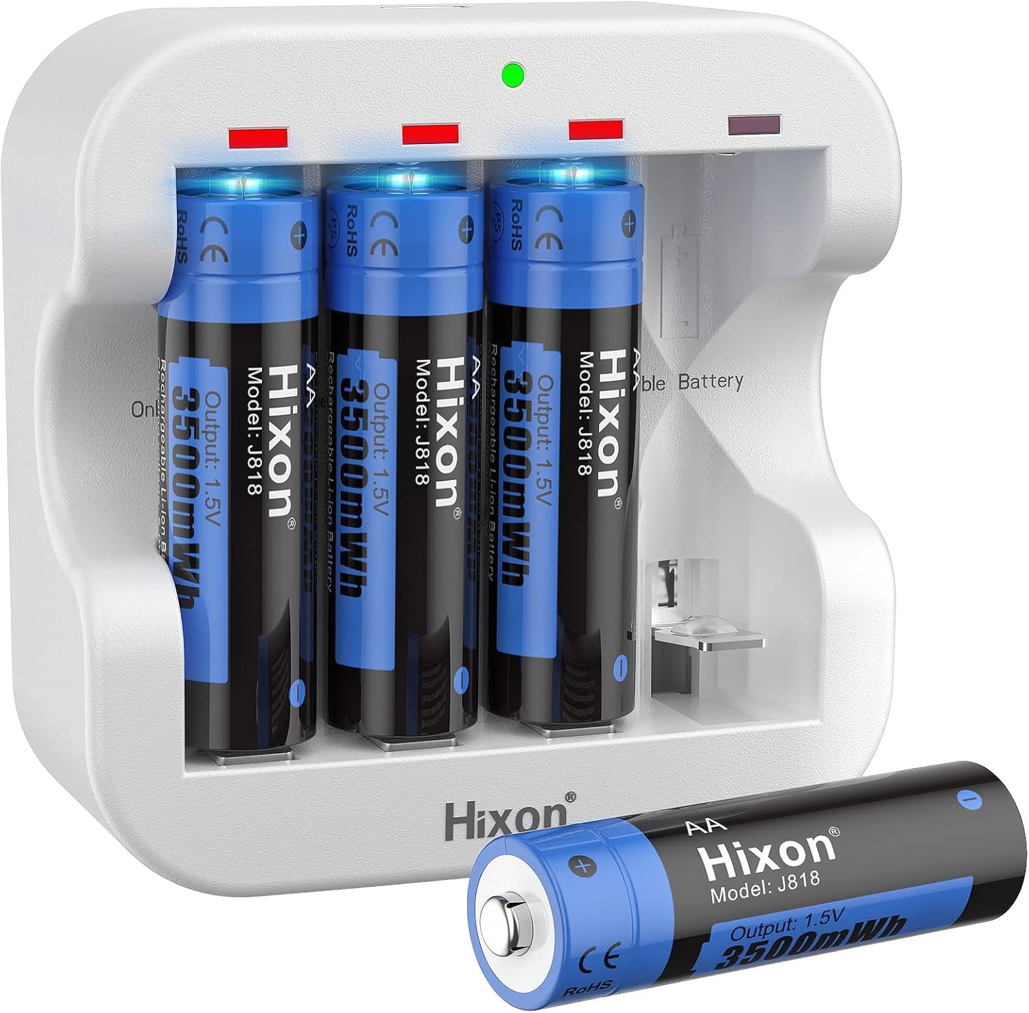 Hixon lithium aa batteries with Charger,3500mWh High-Capacity AA Rechargeable B