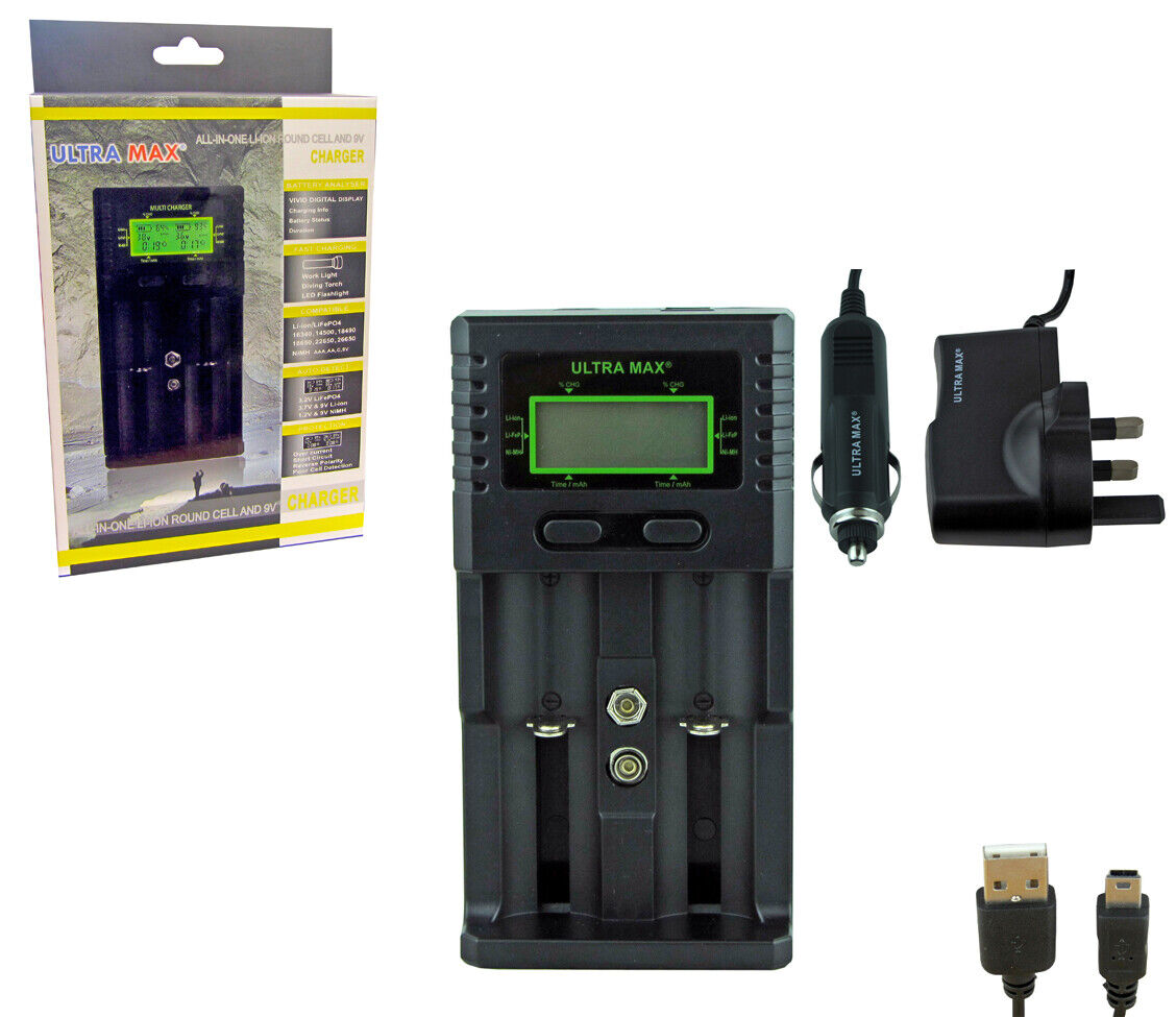 ULTRAMAX UNIVERSAL BATTERY CHARGER AA AAA Li-iON LiFePO4 22650 All In One