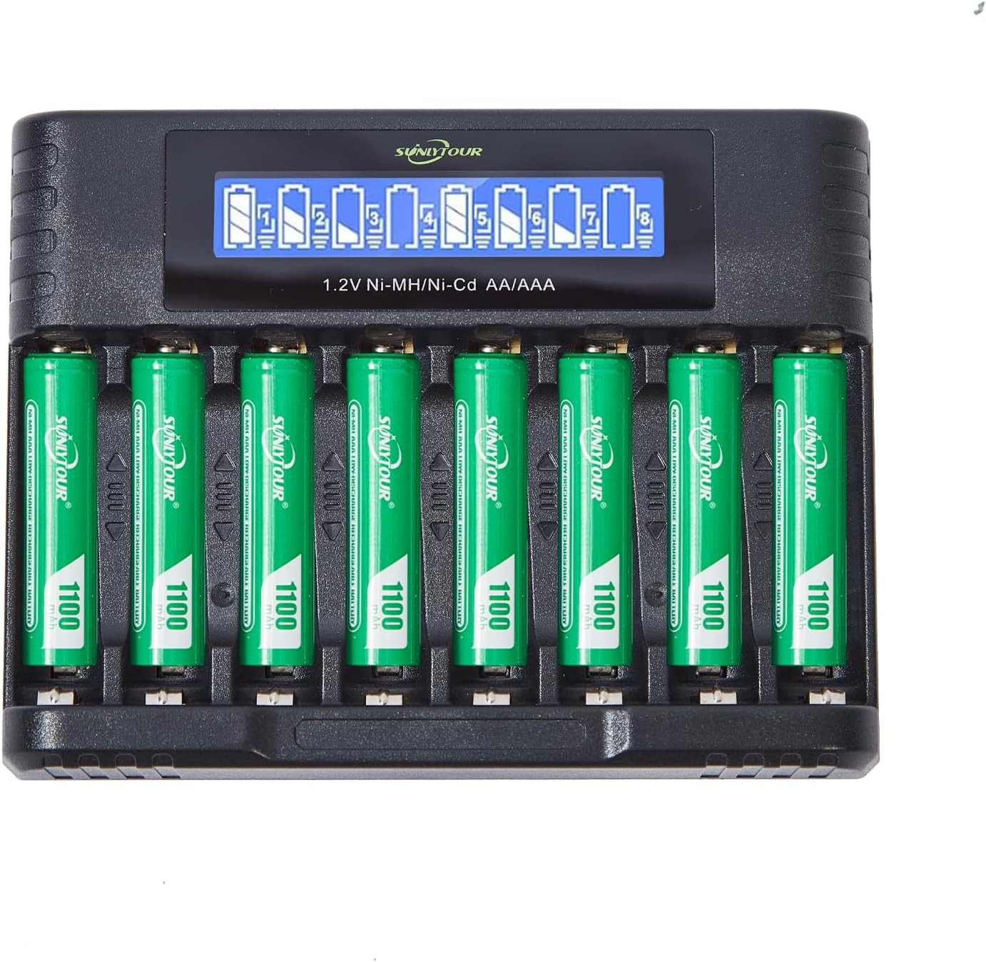 8 pcs 1100mAh AAA Ni-MH Batteries with 8 Slots AAA AA Battery Charger,Recharge