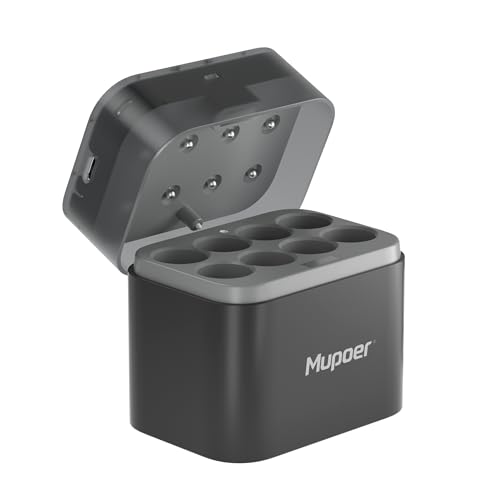 AA Battery Charger for NiMH & Lithium Battery,Rechargeable Batteries AA Hybrid Charger,Smart LED Indicator,Integrated Charging Storage Box Gray,8 Slot,Fast Charging