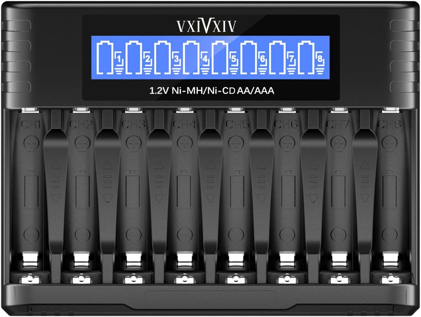 Dlyfull 8 Bay AA AAA Battery Charger for Ni-MH Ni-CD Rechargeable Batteries, Ve