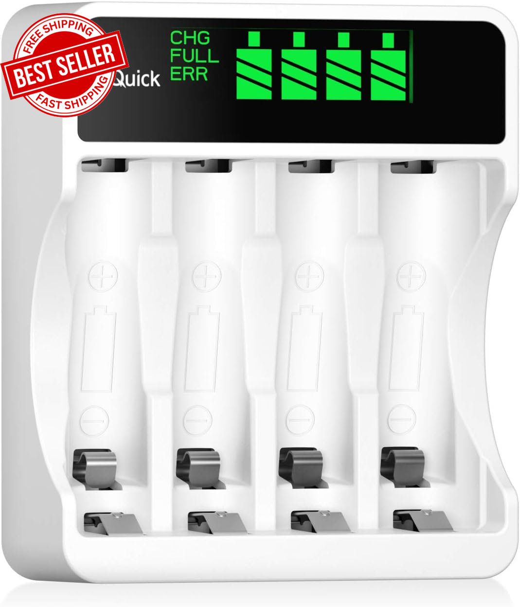HiQuick LCD 4-slot Battery Charger for AA & AAA Ni-MH Ni-CD Rechargeable Batteries, Type C and Micro USB Input, Fast Charging Function, Intelligent Battery Detection Technology AA AAA Charger