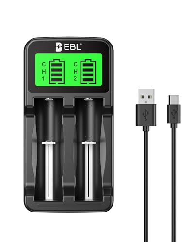 EBL Universal 18650 Battery Charger for 3.7V Lithium ion Rechargeable Batteries 26650 22650 18650 18490 18350 17670 17500 16340 (RCR123) 14500 and 1.2V Ni-MH Ni-CD Rechargeable AA AAA C Batteries