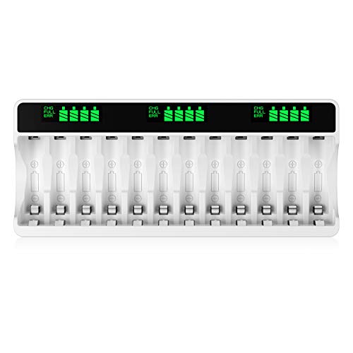 HiQuick 12 Slots LCD Battery Charger for AA & AAA Rechargeable Batteries, Type C and Micro USB Input(5V 2A), Battery Detection Technology