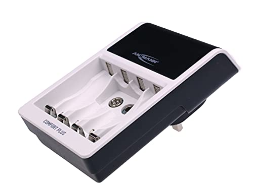 ANSMANN Comfort Plus AA, AAA & 9V Battery Charger For NiMH NiCd Rechargeable Batteries with UK 3-Pin Plug| Quick Charging with Rapid Capacity Testing - 3 Yr Warranty