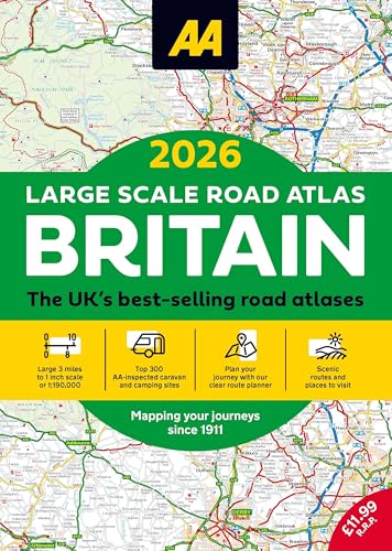 2025 Large Scale Road Atlas Britain (AA Publishing) 3 miles to 1 inch scale (A3 size) Staple Bound