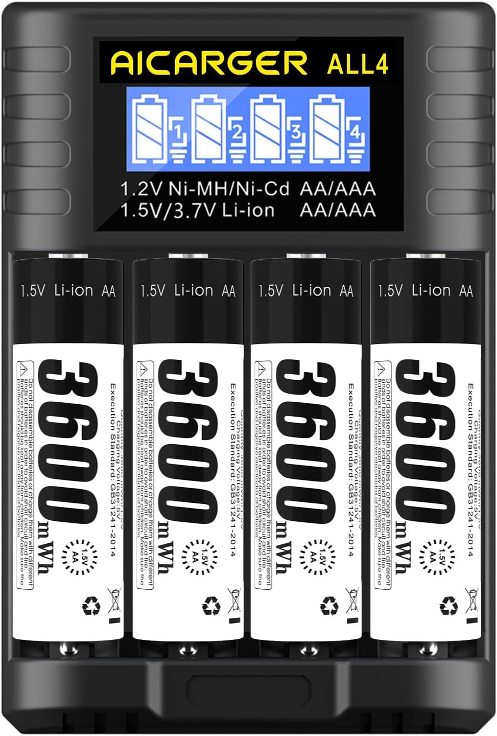 LCD AAA AA Battery Charger for AA and AAA Rechargeable Batteries & 1.5V AAA AA R