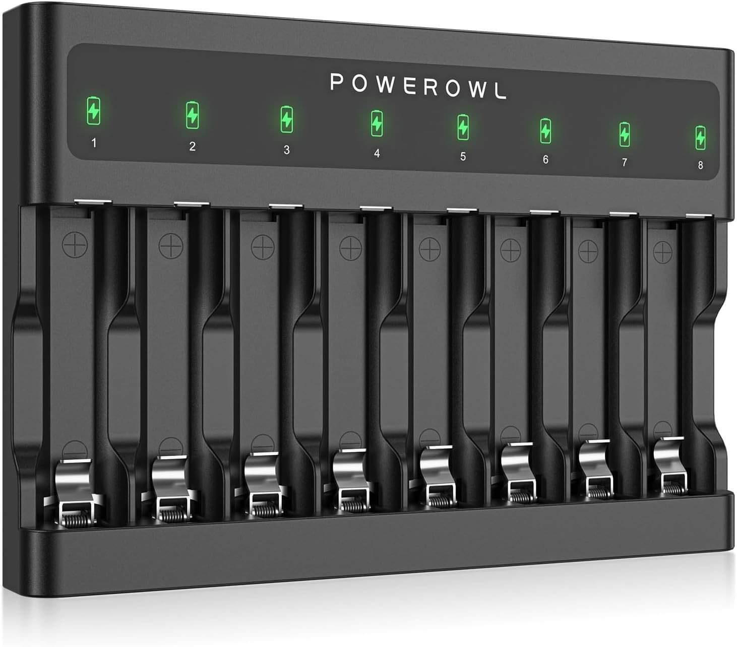 POWEROWL 8 Bay AA AAA Battery Charger (USB High-Speed Charging, Independent Slot