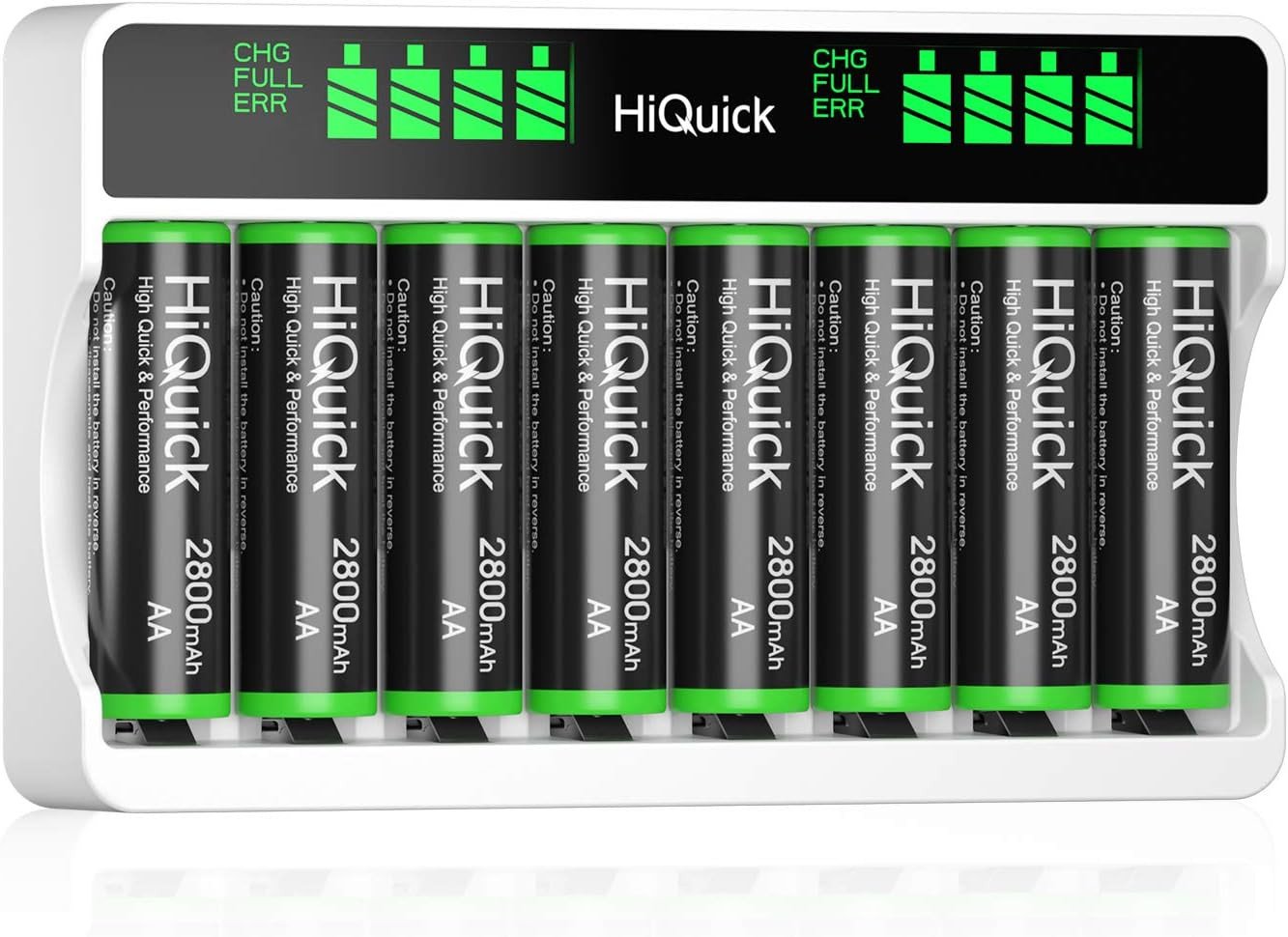 HiQuick 8-Slot AA AAA LCD Battery Charger with 8 x 2800mAh Rechargeable Batterie