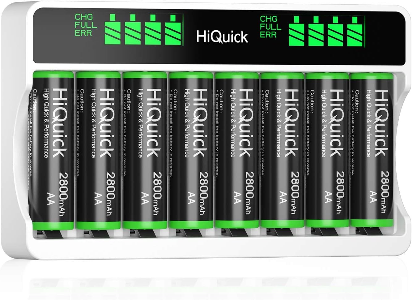 HiQuick 8-slot AA AAA LCD Battery Charger, 5V 2A Type C Input, with 8 x 2800mAh AA NI-MH Rechargeable Batteries, Battery and Charger Set