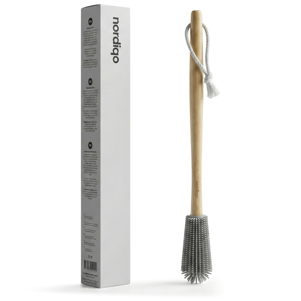 Nordiqo Extra Long Bottle Brush: 40 cm Bamboo Handle & Flexible Hygienic Silicone Head - Compatible with Sodastream (Not Crystal), Aarke Plastic