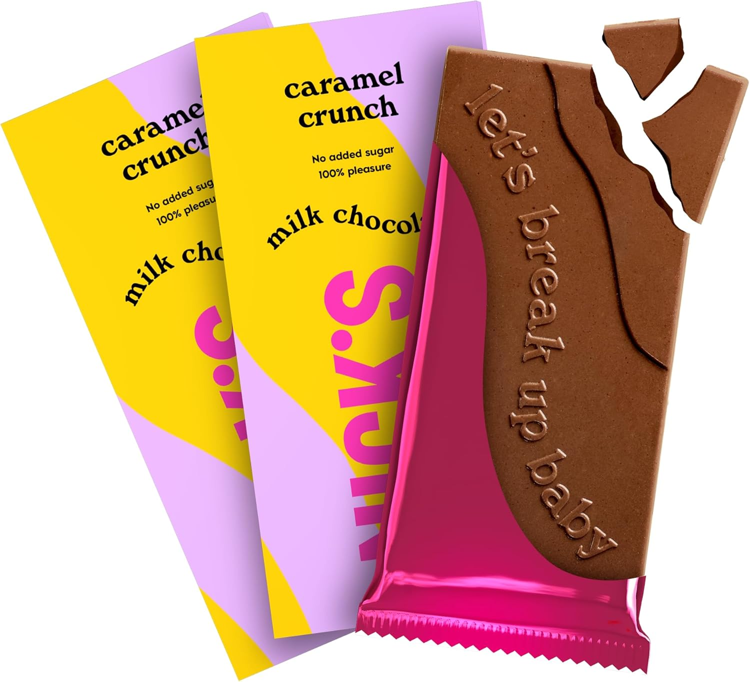 NICKS Keto Chocolate Blocks, Milk Chocolate Caramel Crunch No Added Sugar, Low C