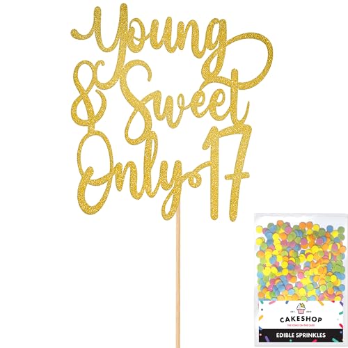 Cakeshop Personalised ABBA Themed Glitter Cake Topper With Sprinkles - Gold Custom Colour - Any Age - Double-Sided Glitter Card Cake Decoration - Custom Toppers for Cakes