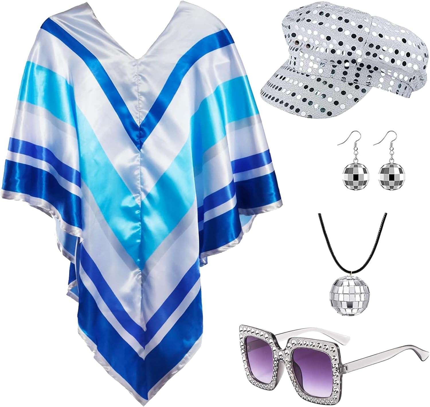 CIGTSICO 6pcs Abba Accessories Set, 70s Disco Accessories for Women, Fancy Dress Costume Jewelry Kit, Headband Ball Earrings Long Scarf Bling Sunglasses Bracelet Short Earrings for Retro Themed Party