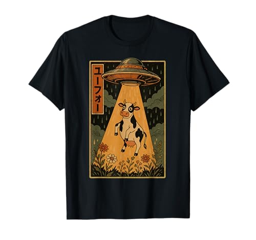 UFO Cow Vintage Japanese Alien Abduction T-Shirt