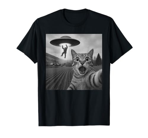 Bigfoot UFO Abduction Cat Selfie | Funny Alien Sci Fi T-Shirt