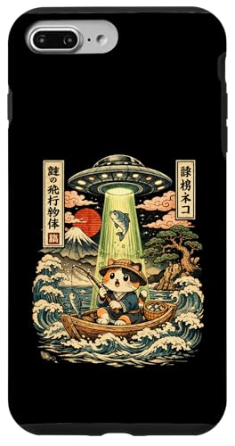 Kawaii Fishing Cat Alien UFO Abduction Vintage Ukiyo-e Case for iPhone 7 Plus/8 Plus