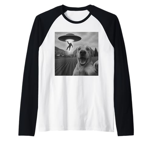 Bigfoot UFO Abduction Dog Selfie - Funny Alien Sci Fi Raglan Baseball Tee