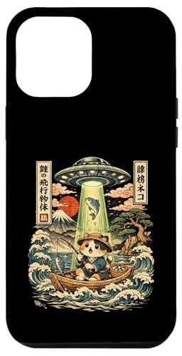 Kawaii Fishing Cat Alien UFO Abduction Vintage Ukiyo-e Case for iPhone 12 Pro Max