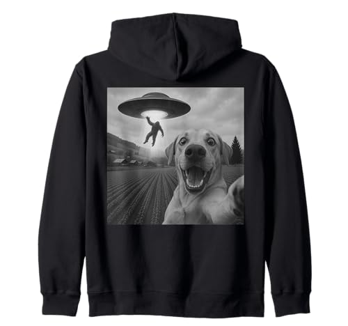 Bigfoot UFO Abduction Dog Selfie - Funny Alien Sci Fi Pullover Hoodie