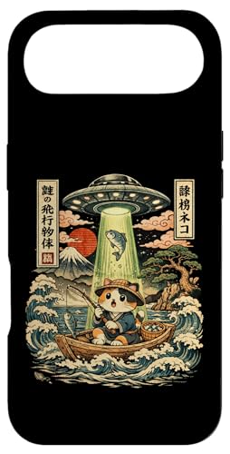 Kawaii Fishing Cat Alien UFO Abduction Vintage Ukiyo-e Case for iPhone Air