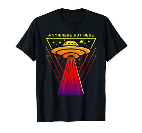 Alien Abduction Tshirt - Anywhere But Here UFO Design T-Shirt