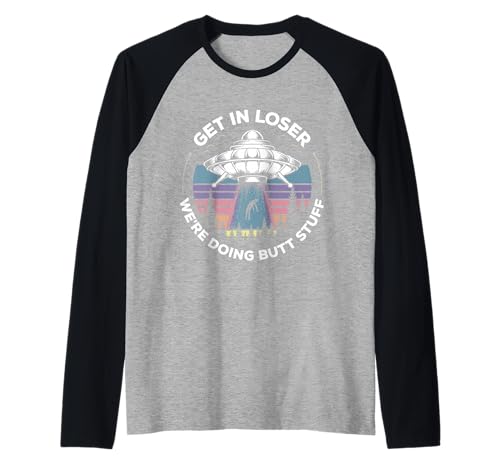 Get in Loser We're Doing Butt Stuff UFO Alien Abduction Raglan Baseball Tee