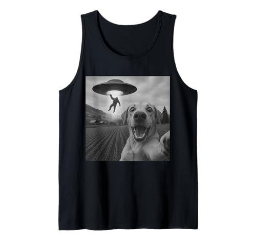 Bigfoot UFO Abduction Dog Selfie - Funny Alien Sci Fi Tank Top