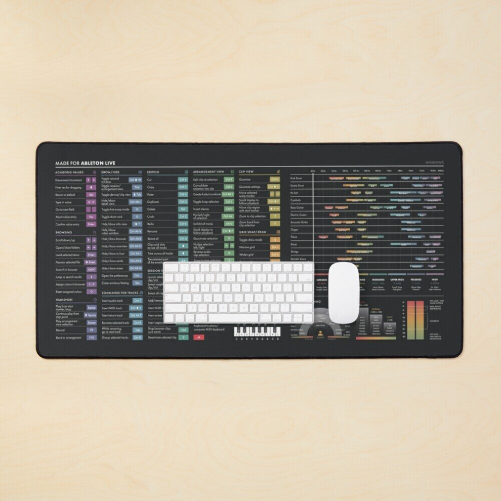 Desk Mat DAW Shortcuts - Ableton Live (Windows) Large Gaming Mouse Pad 35x16 inch