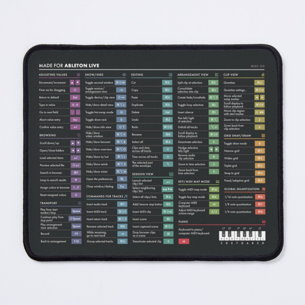 Mouse Pad DAW Shortcuts - Ableton Live (Mac) 11.8 x 9.8 inch Computer Mat Gaming Office Mousepad