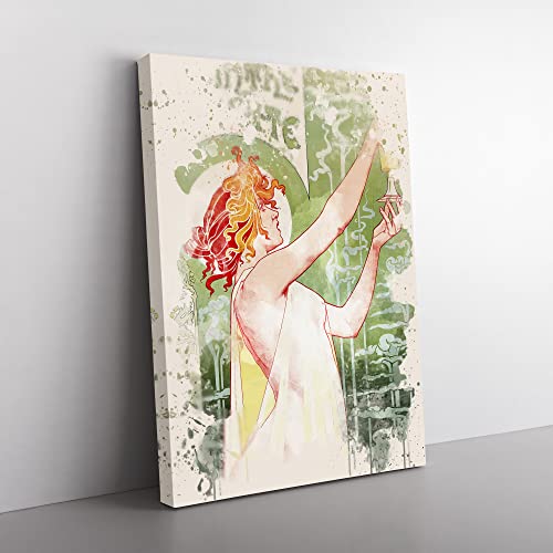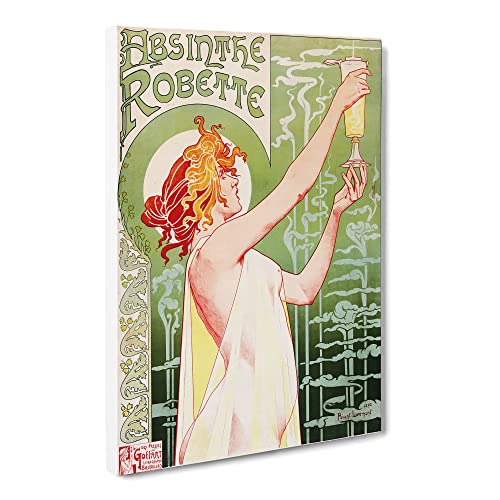 Alphonse Mucha Absinthe Robette Modern Fc Canvas Wall Art Print Ready to Hang, Framed Picture for Living Room Bedroom Home Office Décor, 24x16 Inch (60x40 cm)